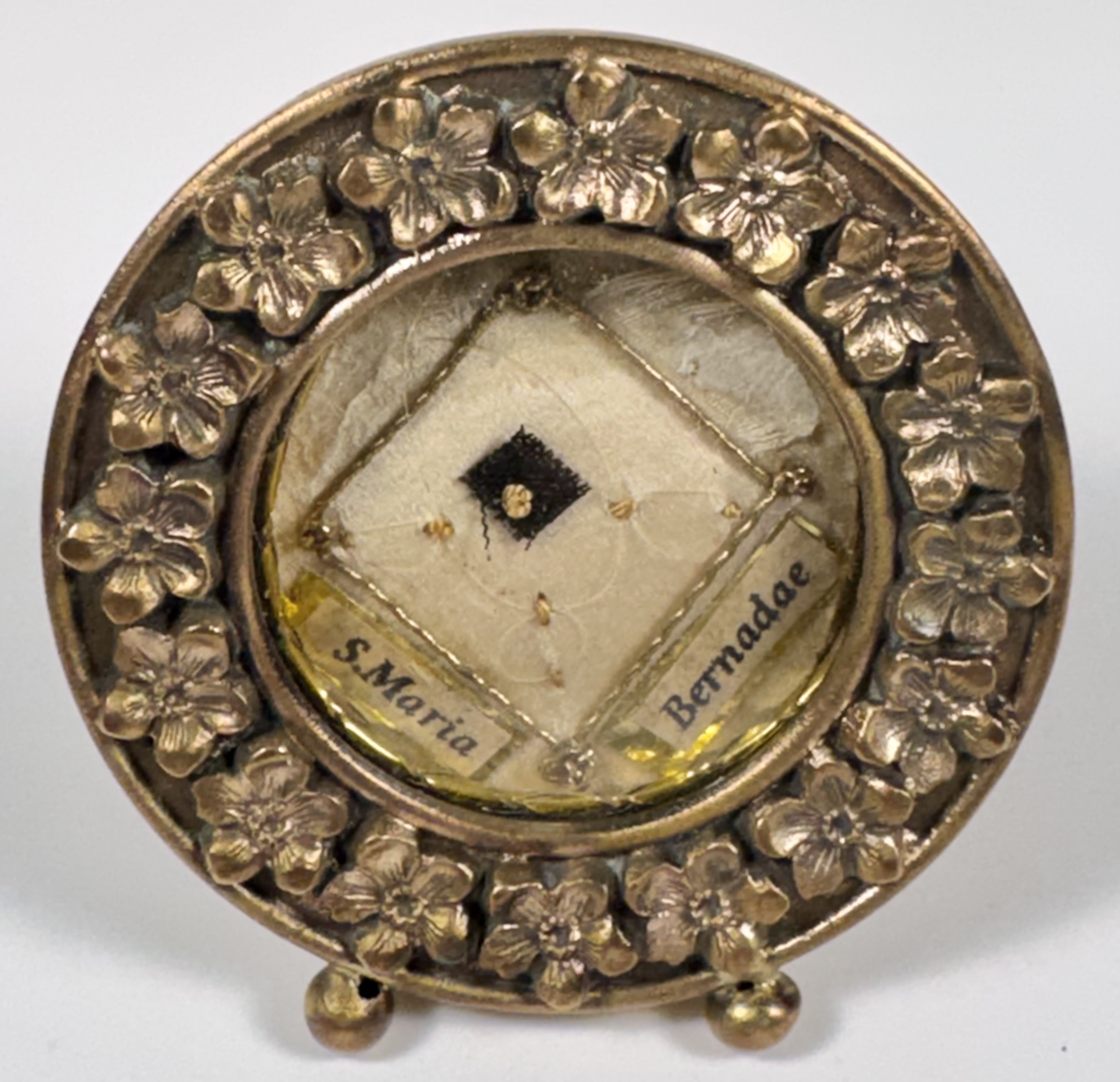 Saint Maria Bernadette Soubirous (†1879) is venerated as a saint in the Catholic Church and is best known for the Marian apparitions of a "small young lady" who asked for a chapel to be built at the nearby garbage dump of the cave-grotto at Massabielle where apparitions are said to have occurred between in 1858. She would later receive recognition when the lady who appeared to her identified herself as the Immaculate Conception. On 29 July 1866, Bernadette took the religious habit of a postulant and joined the Sisters of Charity at their motherhouse at Nevers. She died of her long-term illness at the age of 35 on 16 April 1879 while praying the holy rosary. The Marian shrine at Lourdes (Midi-Pyrénées, France) went on to become a major pilgrimage site, attracting over five million pilgrims of all denominations each year. Bernadette is the Holy Patron of bodily illness, Lourdes, France, shepherds, against poverty, and people ridiculed for their faith. She was Beatified on 14 June 1925 and Canonized on 8 December 1933 by Pope Pius XI. Her Feast day is commemorated on 16 April, alternatively in France by some traditionalist congregations on 7 February.