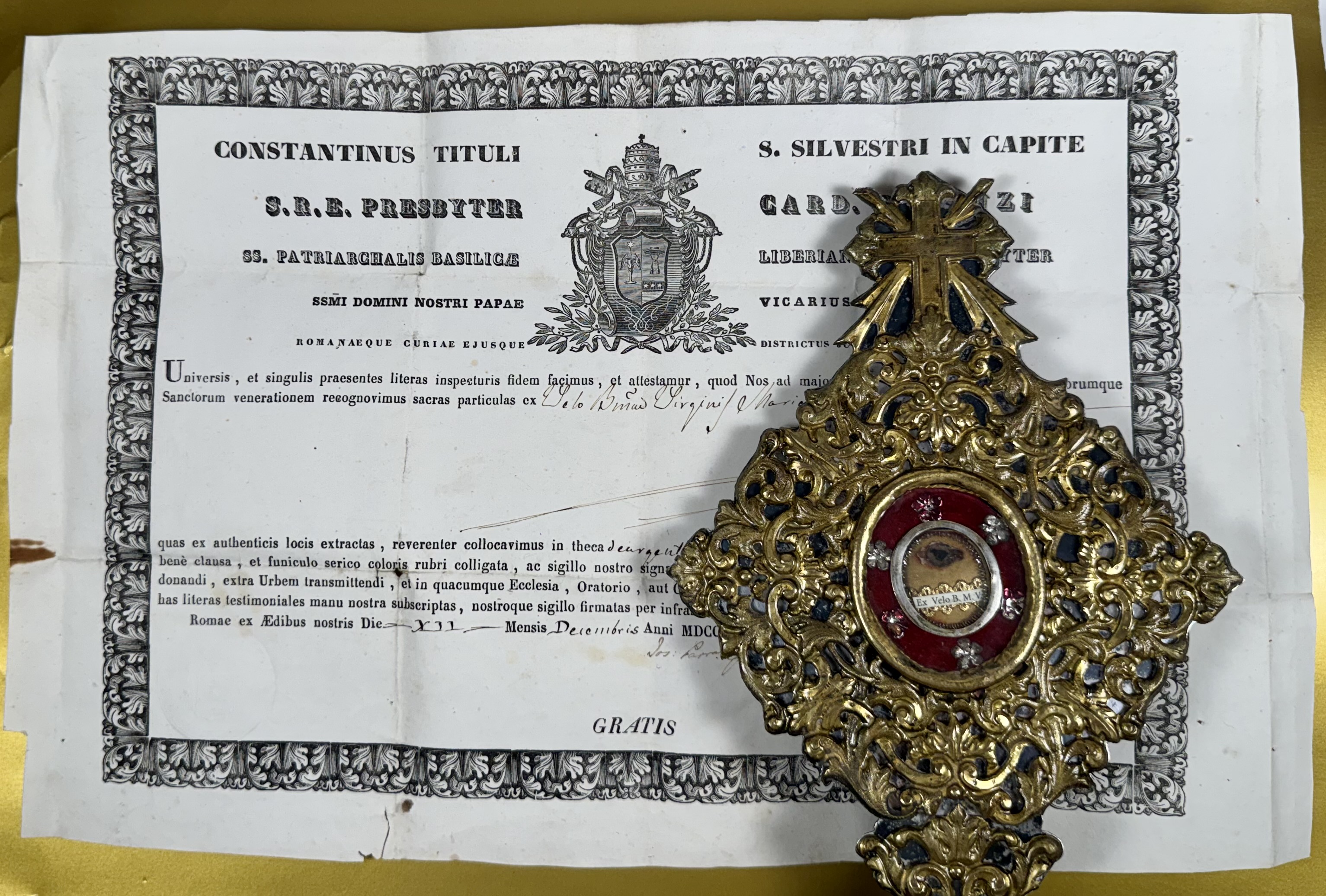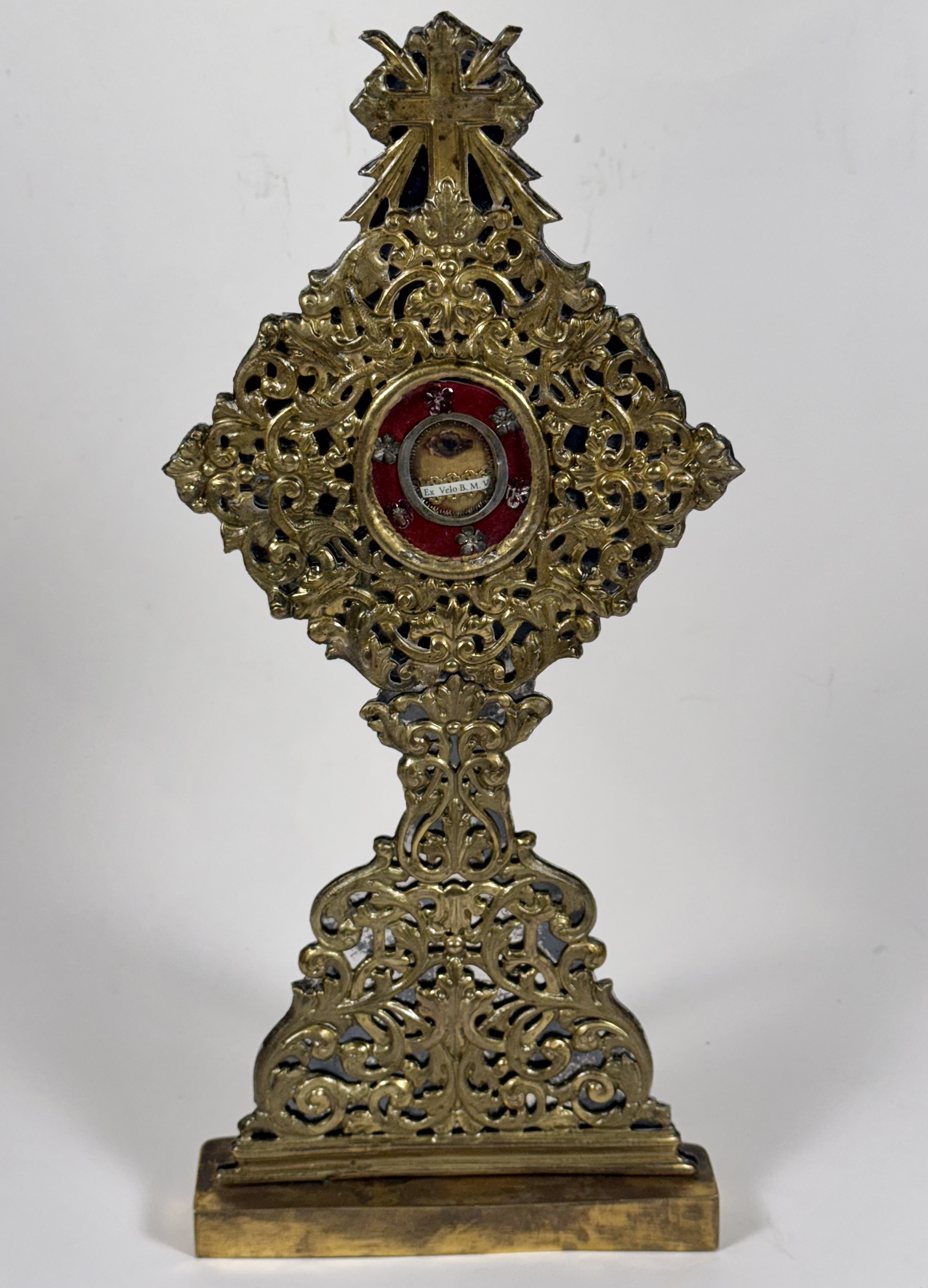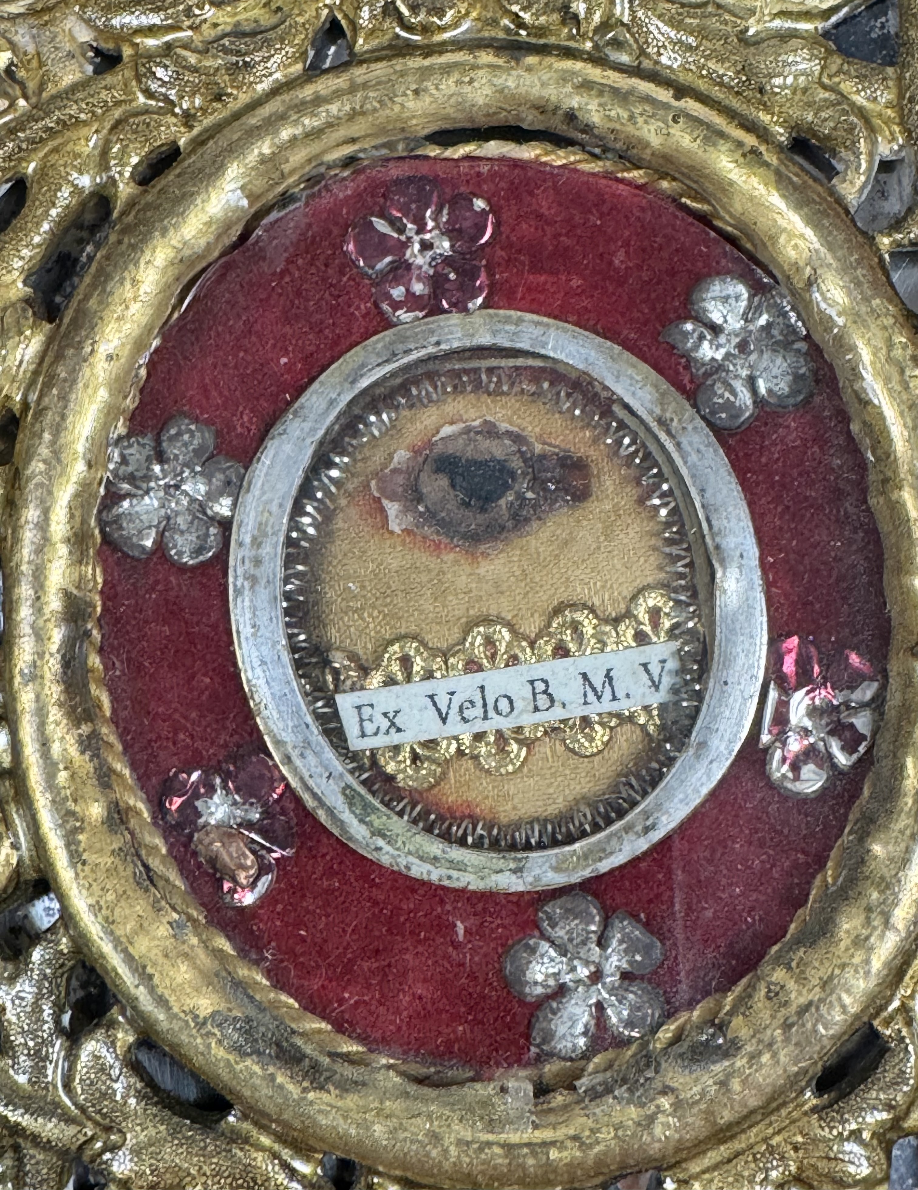 According to tradition, the Veil of the Blessed Virgin Mary was worn by the Virgin as she stood at the foot of the Cross. It had been transferred in the early years of Christianity from Jerusalem to Constantinople when it was presented by the Byzantine Empress Irene to the Holy Roman Emperor Charlemagne. In 876 his descendant Charles the Bald gave the relic to the cathedral at Chartres. The Veil is kept in a golden reliquary beside the high altar and has formed the focus of many traditions throughout the centuries. It was believed to have protected the faithful down through the centuries from many dangers and evils, including famine and war, outbreaks of the plague, and the worst ravishes of the French Revolution. The veil itself is more than six meters long and made of silk. Scientific studies have shown that it is of Syrian design, of fine quality, and can be traced to the first century. Every year on 15th August, the Feast of the Assumption of Our Lady, the Veil is processed through the town of Chartres.