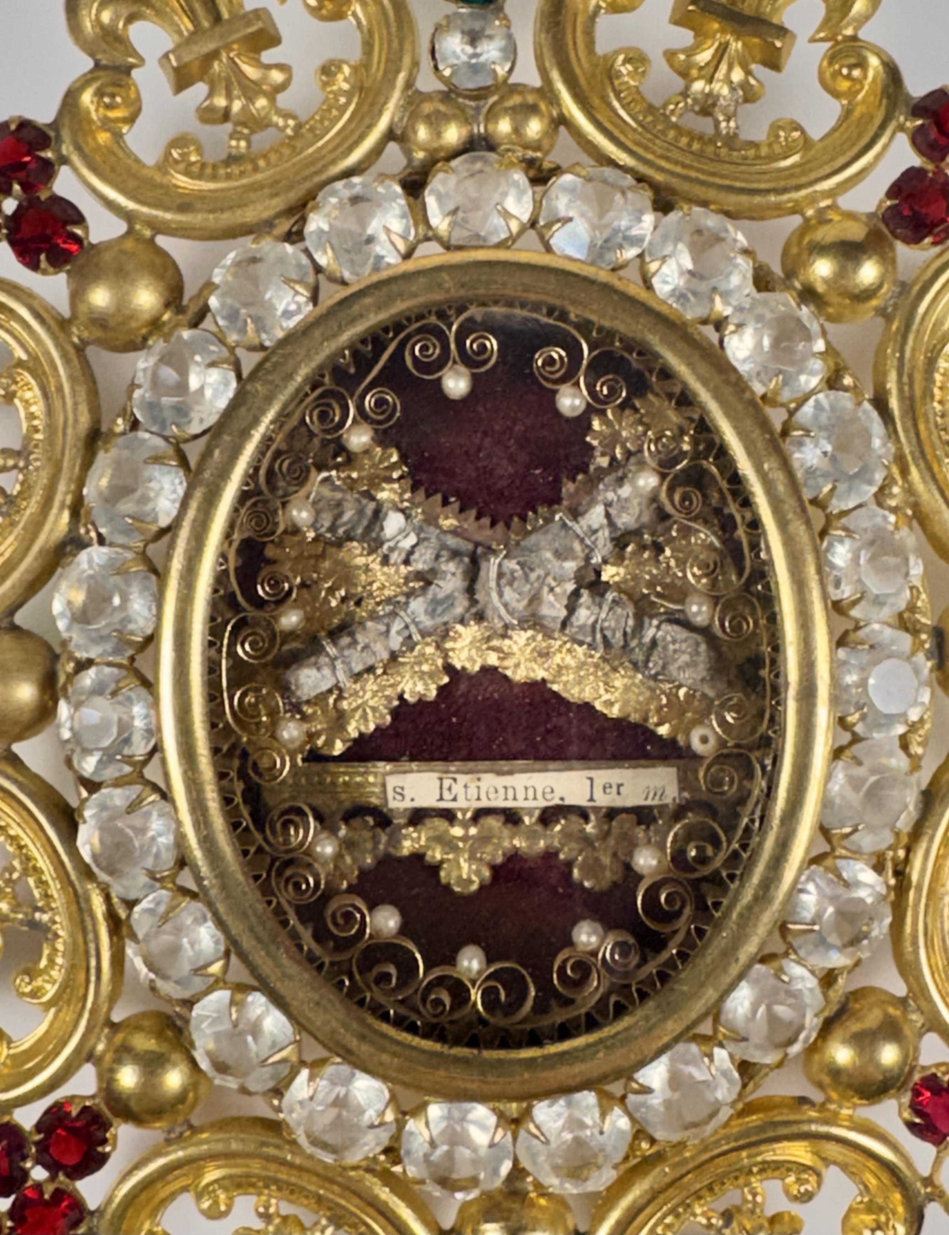 Saint Stephen (†c.34), venerated as the protomartyr or first martyr of Christianity was, according to the Acts of the Apostles, a deacon in the early church at Jerusalem who aroused the enmity of members of various synagogues by his teachings. Accused of blasphemy at his trial, he made a speech denouncing the Jewish authorities who were sitting in judgment on him and was then stoned to death. His martyrdom was witnessed by Saul of Tarsus, a Pharisee who would later become a follower of Jesus and known as Paul the Apostle. The Catholic, Anglican, Oriental Orthodox, Eastern Orthodox Churches, and the Church of the East venerate Stephen as a saint. The relics of the protomartyr were later translated to Rome by Pope Pelagius II during the construction of the basilica of San Lorenzo Fuori le Mura. They were interred alongside the relics of Saint Lawrence, whose tomb is enshrined within the church. According to the Golden Legend, the relics of Lawrence moved miraculously to one side to make room for those of Stephen. Saint Stephen's feast day is celebrated by the Western Church on the 26th of December and on the 27th of December by the Eastern Church. He is considered to be a patron of altar servers; casket makers; deacons; headaches; horses; masons.