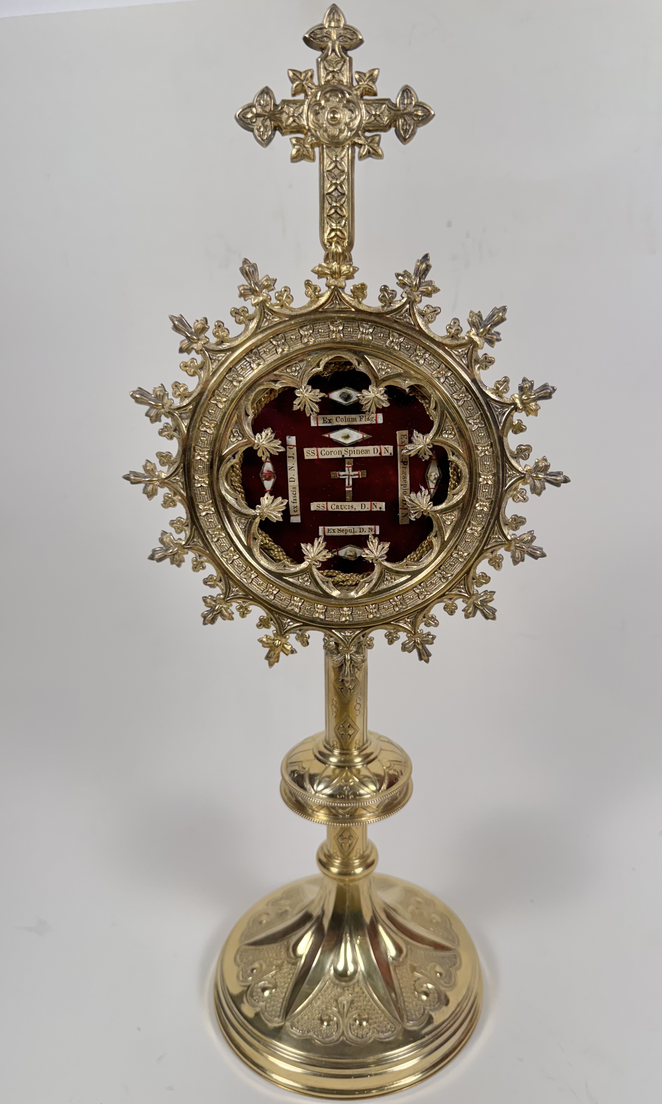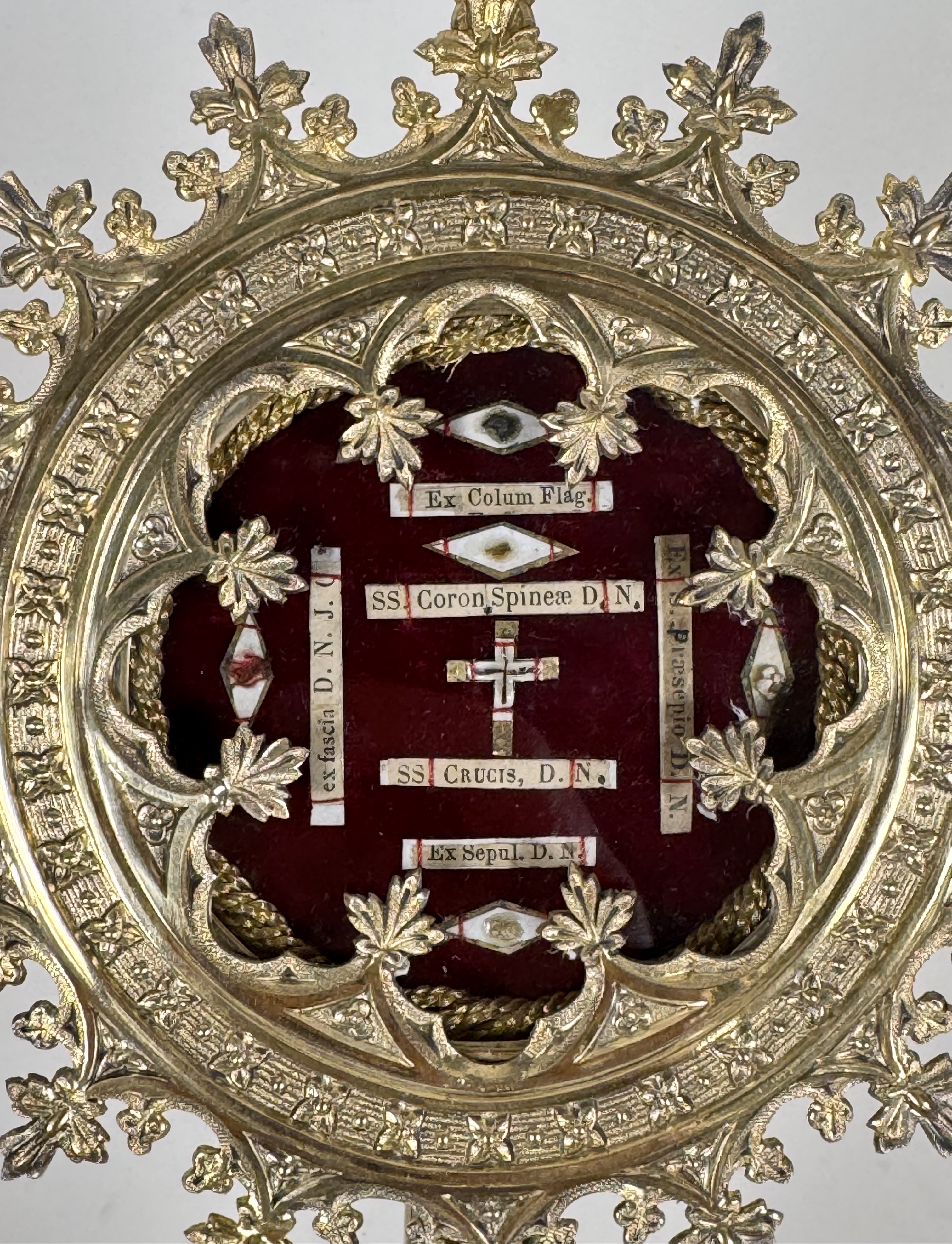 Of the many relics associated with the Passion of Jesus, the Column of the Flagellation (or the Scourging Post) is one of the more physically imposing. Certainly, the significance of the Crown of Thorns, the Holy Lance, Holy Nails, pieces of the True Cross, and other first-class relics of the Passion cannot be understated. However, the sheer size of the Column of the Flagellation lends it a physical presence unmatched by other relics of the Passion. Saint Mark‘s gospel states, “So Pilate, wishing to satisfy the crowd, released for them Barabbas; and having scourged Jesus, he delivered him to be crucified.” The Column of the Flagellation is said to have been discovered by Saint Helena during a visit to Jerusalem in the 4th century and was eventually transported to Italy, and in the early 13th century to be installed in the Church of Saint Praxedes (Santa Prassede) in Rome by the appropriately named Cardinal Giovanni Colonna. Today, the Column of the Flagellation is kept in a small side chapel in the Church of Saint Praxedes, displayed in a glass reliquary.