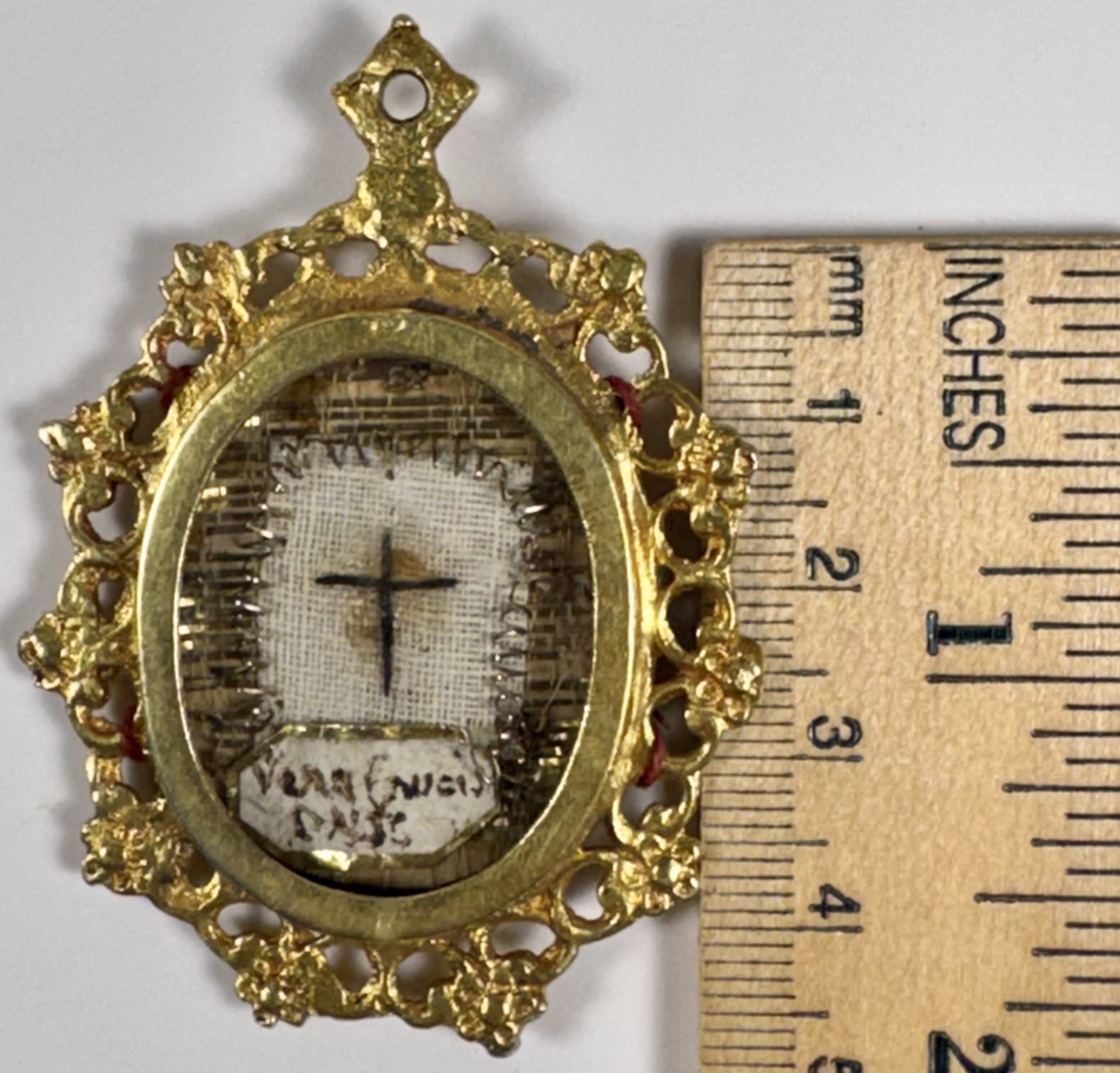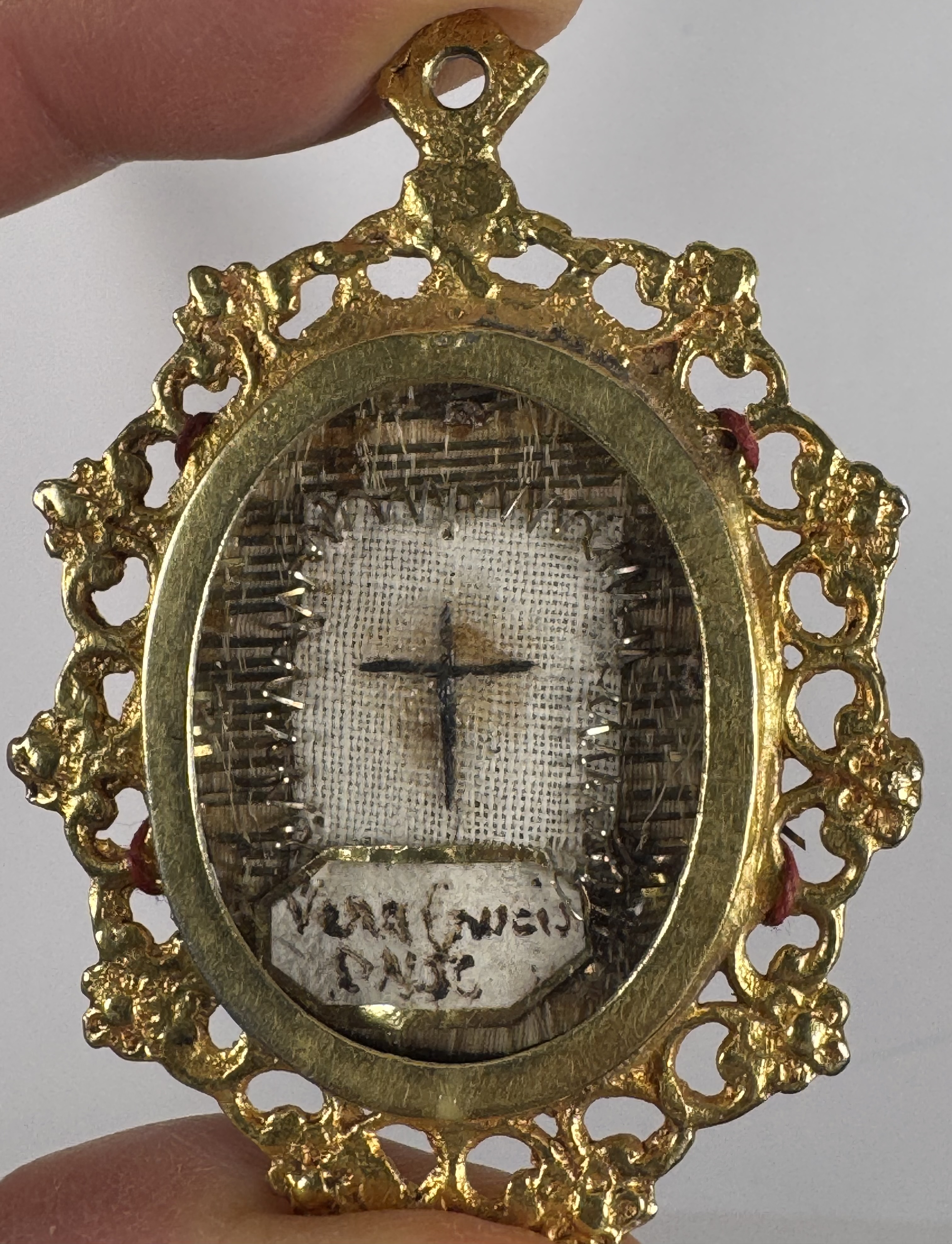 The True Cross is the name for physical remnants that, according to Church tradition, are believed to be from the cross upon which Jesus was crucified. Empress Helena, the mother of Constantine, the first Christian Emperor of Rome, traveled to the Holy Land in 326–28, where she discovered the hiding place of three crosses that were believed to be used at the crucifixion of Jesus and of two thieves, St. Dismas and Gestas, executed with him, and a miracle revealed which of the three was the True Cross. Fragments of the Cross were broken up, and the pieces were widely distributed; in 348, in one of his Catecheses, Cyril of Jerusalem remarked that the "whole earth is full of the relics of the Cross of Christ." Most of the small relics of the True Cross in Europe came from Constantinople after the city was captured and sacked in 1204 during the Fourth Crusade. They were carved up by the present bishops and divided with other very precious relics among the knights, who, after their return to the homeland, donated them to churches and monasteries.