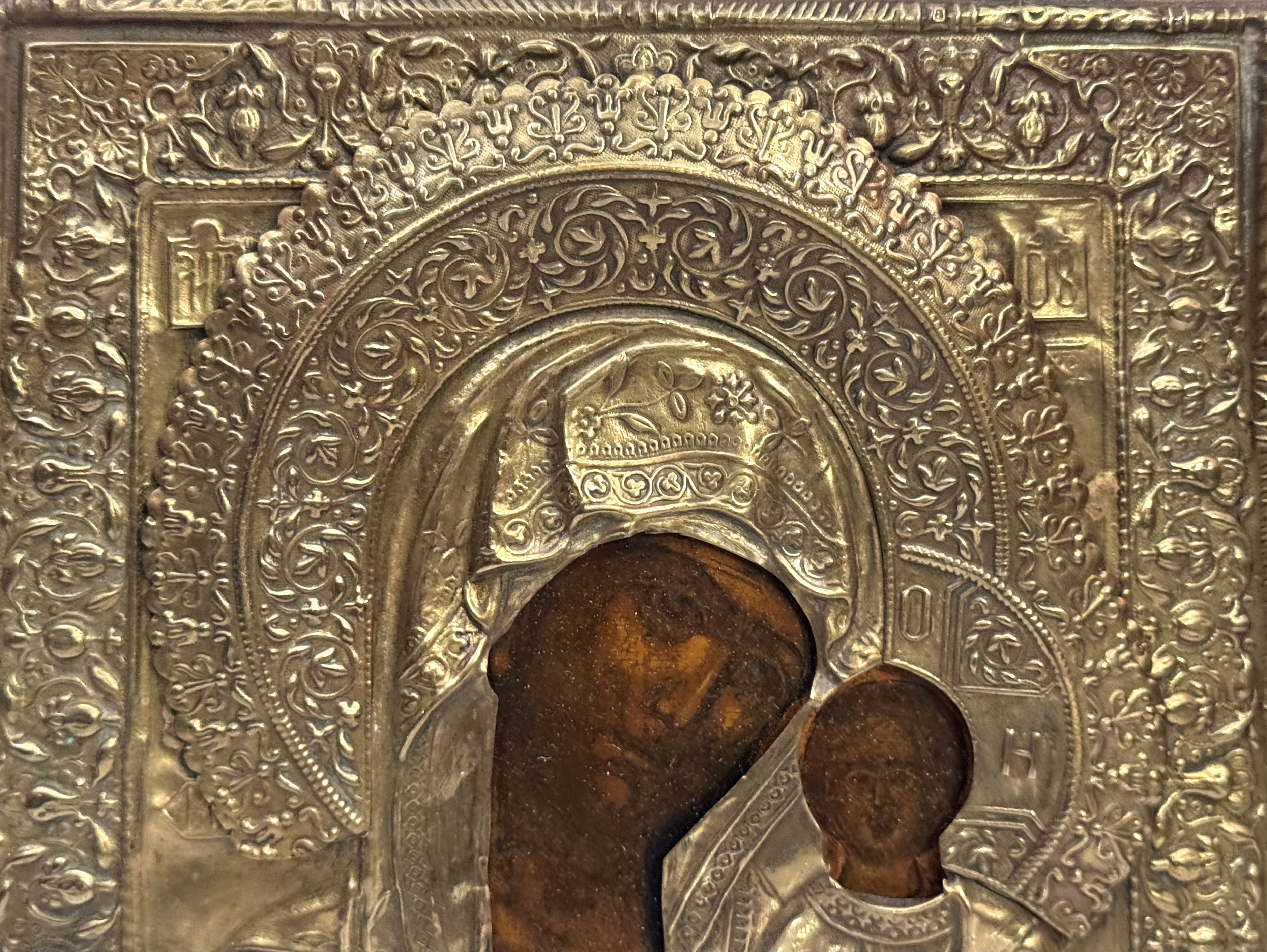 Russian Icon - Our Lady of Kazan in brass revetment cover