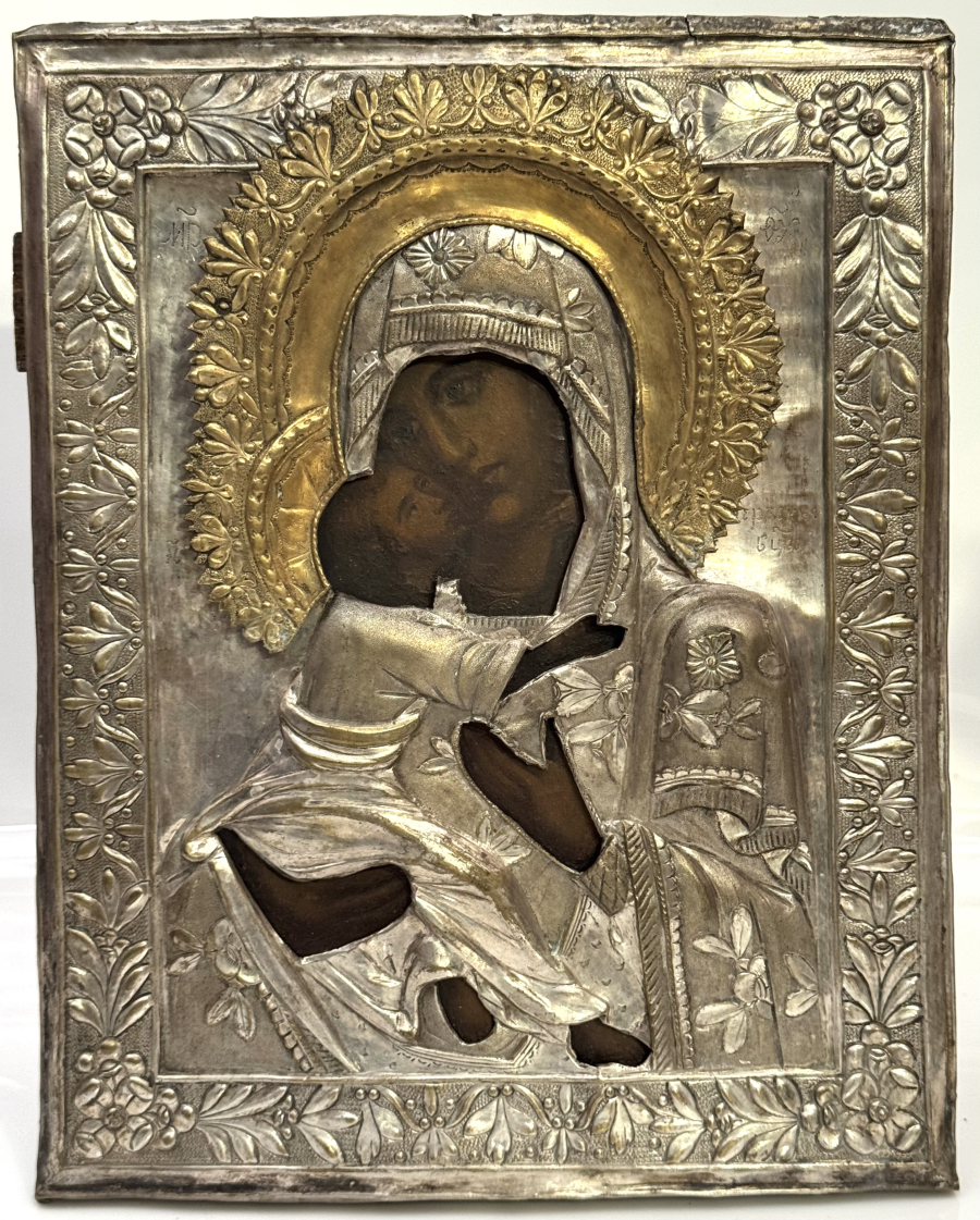 Our Lady of Vladimir is one of the most highly venerated Orthodox icons and a typical example of Byzantine iconography. The original 12th-century icon survived and is displayed in the Tretyakov Gallery museum in Moscow. Even more than most famous icons, the original has been copied repeatedly for centuries and many copies now have considerable artistic and religious significance of their own. The icon is a version of the Eleusa (Tenderness) type, with the Christ child snuggling up to his mother's cheek. The venerated image was used to celebrate the coronations of tsars, the elections of patriarchs, and other important ceremonies of the Russian state. Her feast day is June 3.