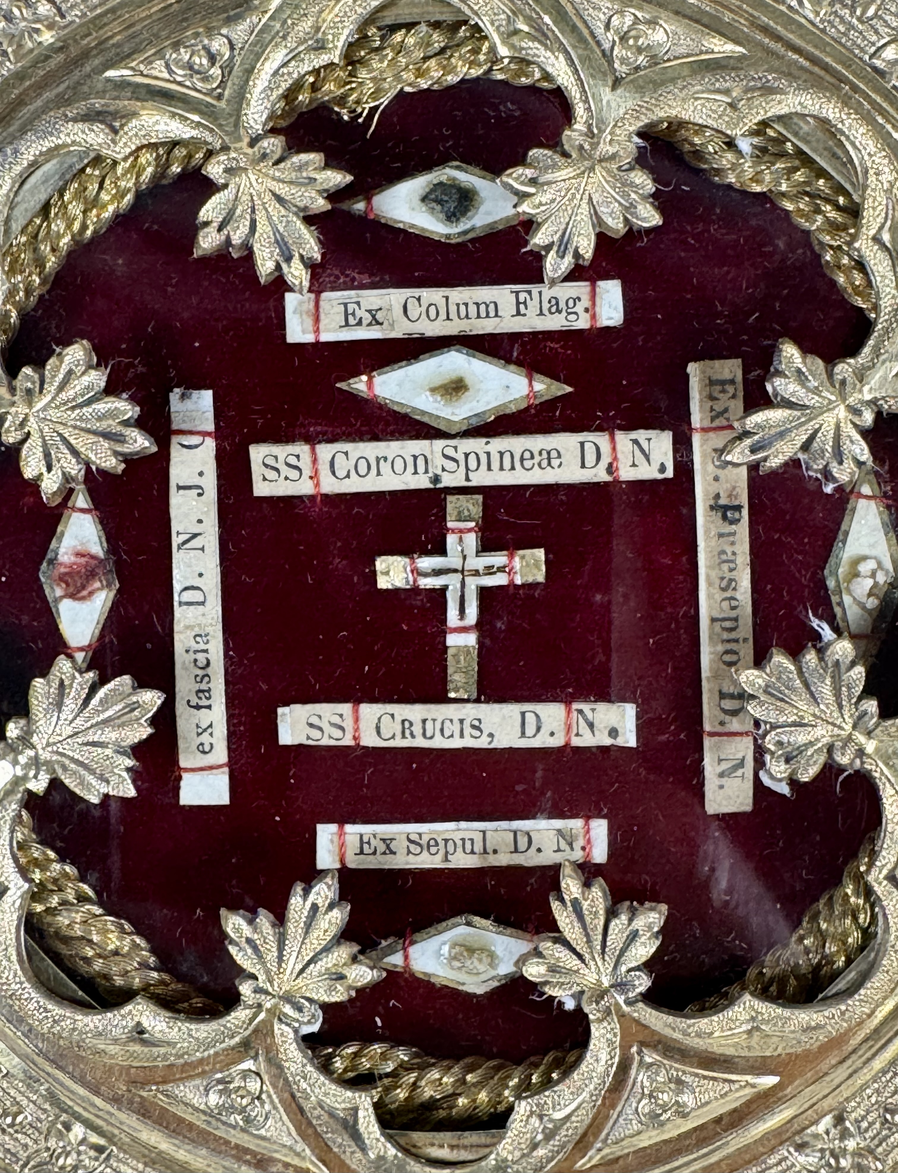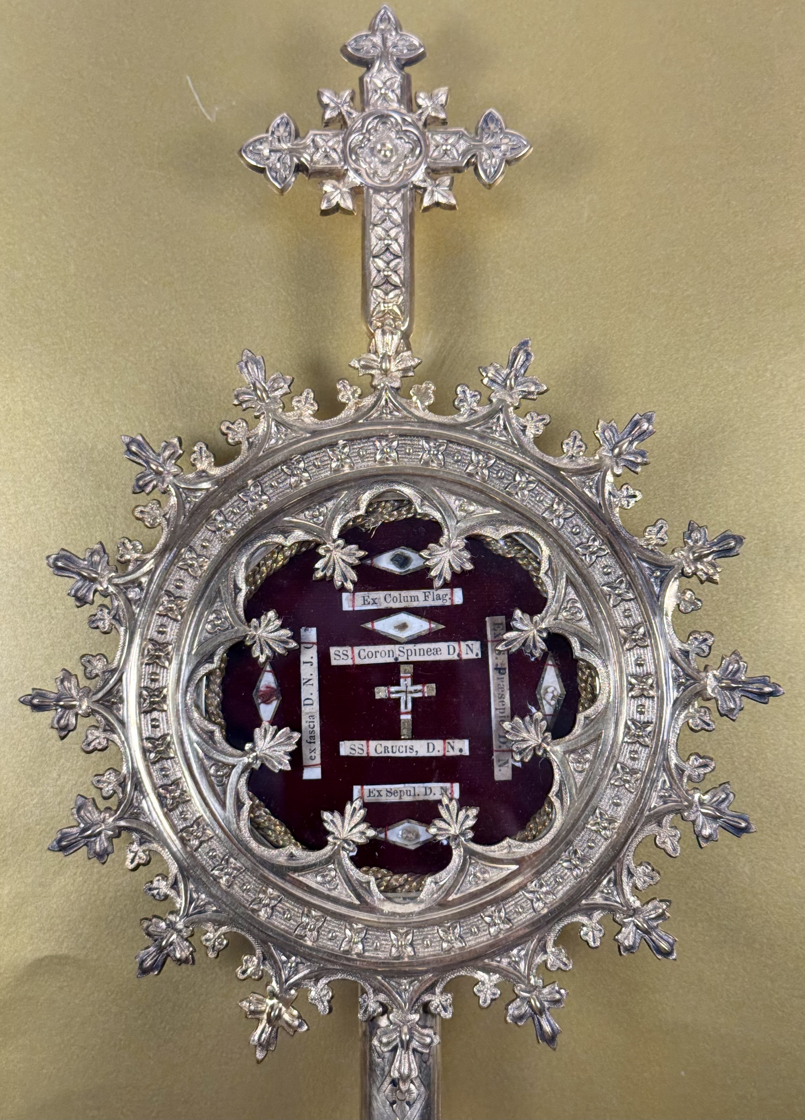 Of the many relics associated with the Passion of Jesus, the Column of the Flagellation (or the Scourging Post) is one of the more physically imposing. Certainly, the significance of the Crown of Thorns, the Holy Lance, Holy Nails, pieces of the True Cross, and other first-class relics of the Passion cannot be understated. However, the sheer size of the Column of the Flagellation lends it a physical presence unmatched by other relics of the Passion. Saint Mark‘s gospel states, “So Pilate, wishing to satisfy the crowd, released for them Barabbas; and having scourged Jesus, he delivered him to be crucified.” The Column of the Flagellation is said to have been discovered by Saint Helena during a visit to Jerusalem in the 4th century and was eventually transported to Italy, and in the early 13th century to be installed in the Church of Saint Praxedes (Santa Prassede) in Rome by the appropriately named Cardinal Giovanni Colonna. Today, the Column of the Flagellation is kept in a small side chapel in the Church of Saint Praxedes, displayed in a glass reliquary.