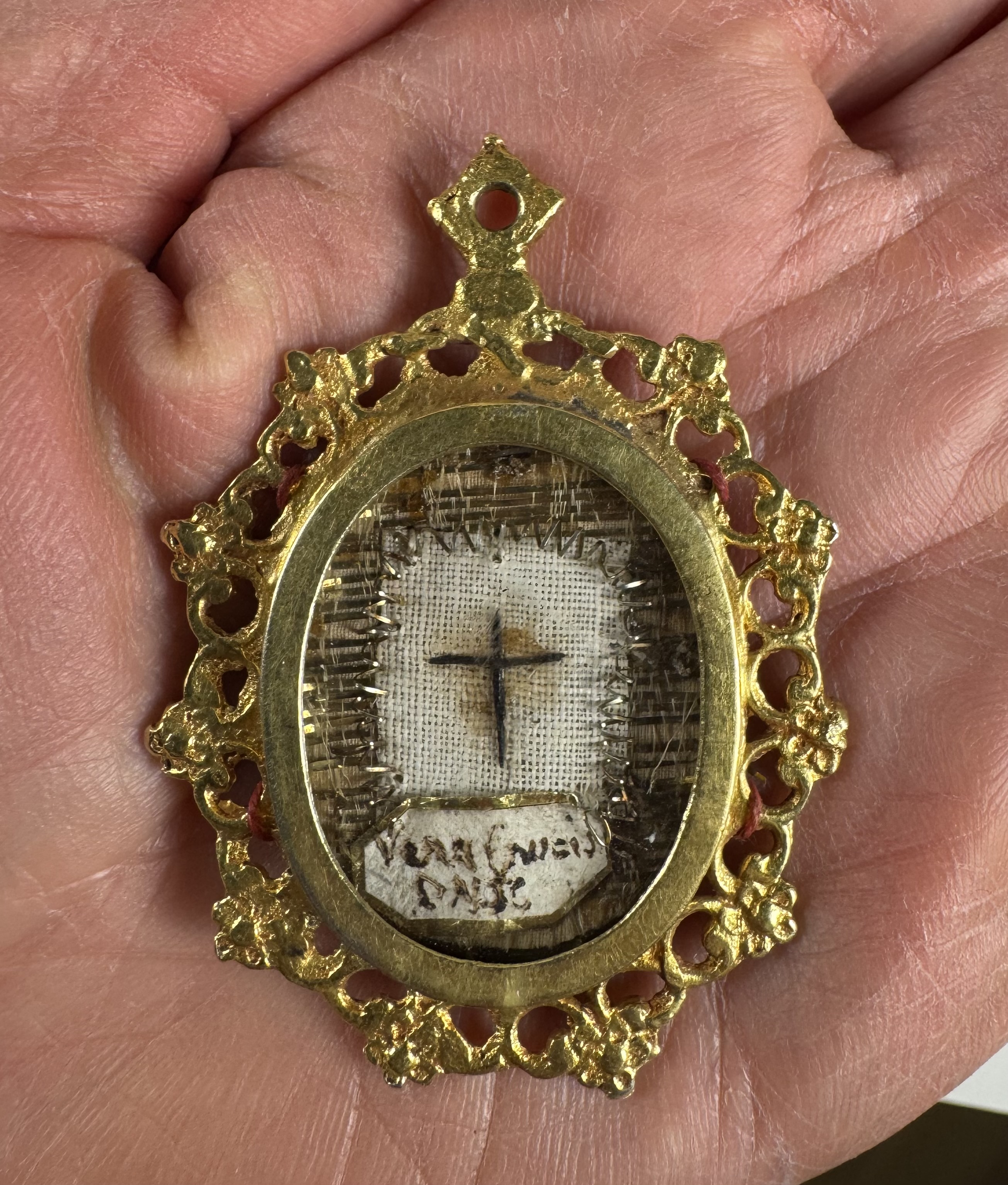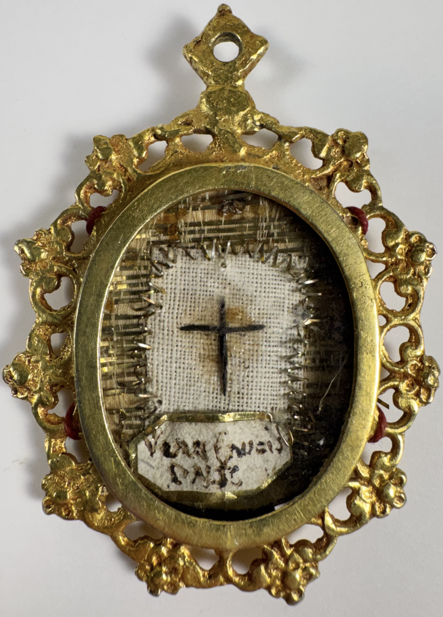 The True Cross is the name for physical remnants that, according to Church tradition, are believed to be from the cross upon which Jesus was crucified. Empress Helena, the mother of Constantine, the first Christian Emperor of Rome, traveled to the Holy Land in 326–28, where she discovered the hiding place of three crosses that were believed to be used at the crucifixion of Jesus and of two thieves, St. Dismas and Gestas, executed with him, and a miracle revealed which of the three was the True Cross. Fragments of the Cross were broken up, and the pieces were widely distributed; in 348, in one of his Catecheses, Cyril of Jerusalem remarked that the "whole earth is full of the relics of the Cross of Christ." Most of the small relics of the True Cross in Europe came from Constantinople after the city was captured and sacked in 1204 during the Fourth Crusade. They were carved up by the present bishops and divided with other very precious relics among the knights, who, after their return to the homeland, donated them to churches and monasteries.